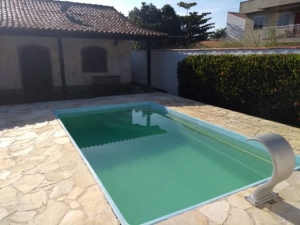 Casa com 2 quartos sala cozinha banheiro social churrasqueira piscina depósito para materiais terreno 360 m² área construída 169 m²