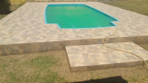 Piscina churrasqueira com banheiro 1 suíte independente |