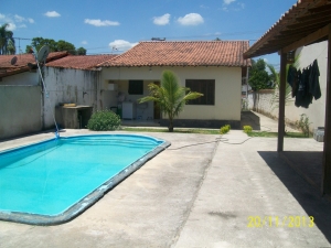 casa com 3 quartos , suite, sala, cozinha, banheiro, piscina, área externa , quintal , de frente para a rua principal. A casa serve para comércio.